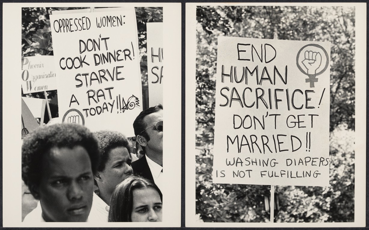 Retourner à ses confitures, à ses tartes, à ses tambouilles. Retourner à sa place, par opposition à vivre sa vie. Cʼest une représentation sans doute assez binaire de la condition des femmes que Brigitte Fontaine propose dans sa chanson «  Blanche-Neige  » sortie en 1968, et pourtant, cette dualité est assez emblématique du paysage culturel de son époque. Au début des années 1960, Betty Friedan publie aux États-Unis The Feminine Mystique (1963), ouvrage dans lequel elle décrit lʼexistence essentiellement domestique des femmes blanches bourgeoises étasuniennes. Son texte est une production clé dans la constitution dʼune conscience féministe spécifique aux années 1970, que lʼon désigne communément comme le féminisme de la seconde vague1. Ce mouvement politique sʼest donné pour programme la libération des femmes, en insistant sur deux points au moins : la critique de lʼassignation des femmes au foyer (qui les prive dʼune participation aux affaires publiques et de lʼaccès au marché du travail) ainsi que de lʼabsence dʼautonomie corporelle (opposée à la connaissance de son corps par le self-help et la gestion de la fertilité). Dans ce contexte, quitter la cuisine semble un acte rebelle et profondément politique (fig. 0.2), permettant aux femmes dʼentrer dans le champ économique capitaliste, mais aussi de quitter la sexualité normative du foyer pour prendre le contrôle de leurs corps et de leurs vies. Si ce programme remet en question les fondements du patriarcat, il a aussi produit son lot dʼangles morts, comme les autrices afroféministes ou lesbiennes lʼont rapidement montré. Elles ont sévèrement jugé lʼagenda monochrome et monofocal déployé par des féministes blanches dʼabord soucieuses dʼobtenir des droits équivalents à ceux de leurs homologues masculins et bourgeois, sans remettre profondément en cause les systèmes dʼoppression raciaux et économiques (pour ne citer quʼeux) qui traversent le champ social. Cʼest ainsi que bell hooks, en 1984, lit B. Friedan avec ironie, lui signalant que les femmes noires nʼont peut-être jamais souhaité se libérer de la cuisine et du foyer, et que leur libération ne repose pas sur lʼopposition aux hommes, noirs notamment, mais plutôt à leurs «  sÅ“urs  » blanches qui ne les ont jamais incluses que de biais dans un mouvement quʼelles envisageaient dʼabord comme le leur (2017[1984], 78).
