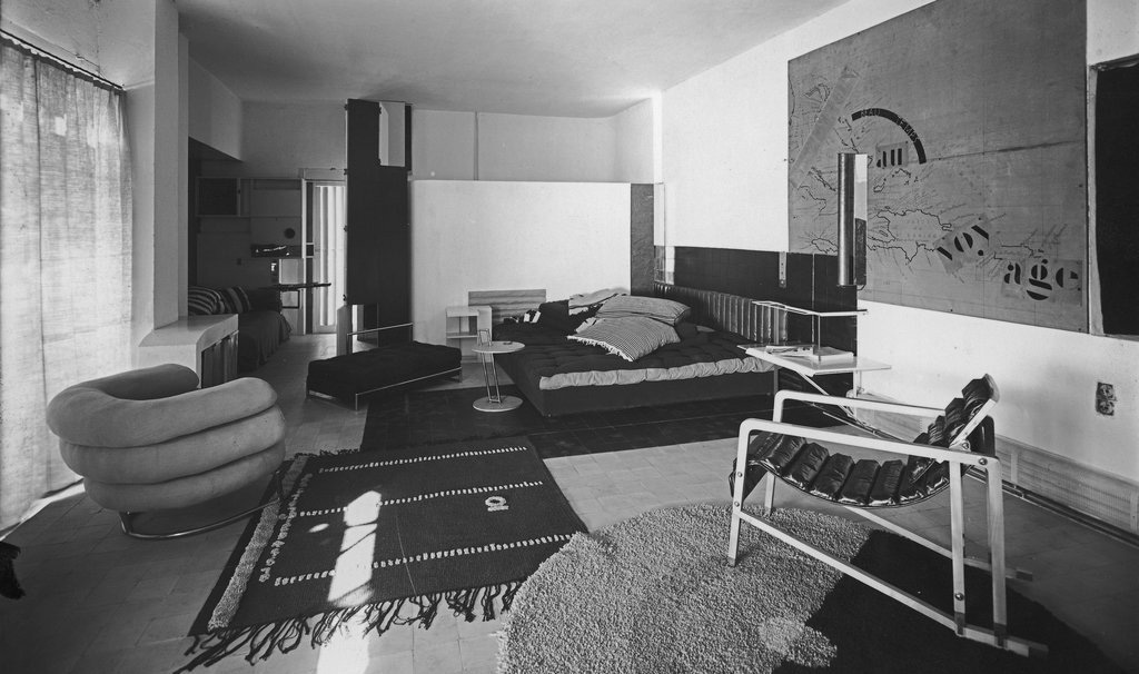 Ces mots présentent des femmes qui ne sont pas des agentes dans les espaces quʼelles habitent, mais qui composent une partie du mobilier. Plus encore, ils choisissent un motif sexiste qui sépare les hommes des femmes, à travers lʼidée dʼune «  nature  » profondément différente, ce qui leur confère des rôles clairement établis. Il nʼest donc pas étonnant que Le Corbusier, invité dans la maison E1027 (fig. 0.8) conçue par Eileen Gray et son protégé Jean Badovici, ait ressenti le besoin irrépressible dʼy ajouter une fresque, alors que Gray, conformément aux principes modernes dont Le Corbusier était par ailleurs un défenseur, refusant toute décoration des murs (Moore 2013 ; fig. 0.9.b).