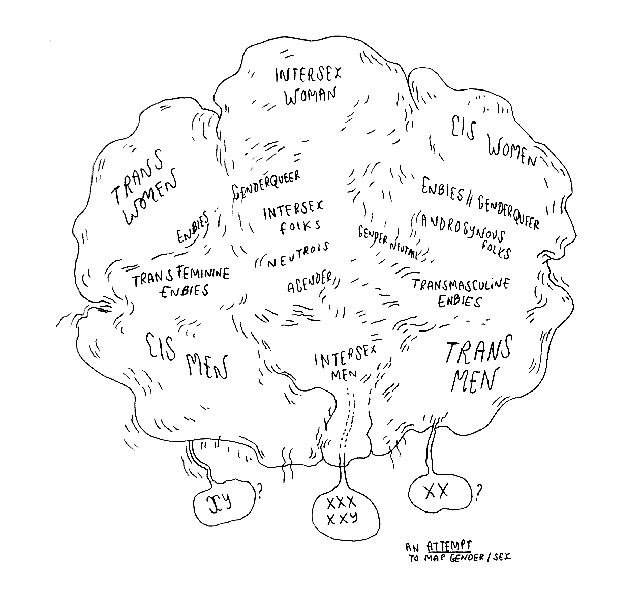 Queer a lʼavantage de lʼindéfinition, ce qui ne signifie pas que le terme soit vide, mais quʼil doit sans cesse être retravaillé. Pour ma part, jʼuserai de ses trois dimensions. Premièrement, jʼutiliserai sa définition connectée aux politiques de lʼidentité. Queer peut en effet se comprendre comme «  les personnes queers  », qui sont aussi parfois aussi désigné·es par lʼacronyme LGBTQIA+POC (Lesbiennes, Gays, Bi·es, Trans*, Queer, Intersexes, Asexuel·le.s et People of Color). On peut ici apprécier la clarté peut-être salutaire que produit un terme généraliste et souple par rapport à un acronyme dont lʼexhaustivité ne garantit jamais lʼexactitude, et même crée de multiples débats au sein des communautés concernées. Je me servirai néanmoins des deux termes, dans la mesure où la «  soupe alphabet  » (alphabet soup) de «  LGBTQIA+POC  » a le mérite de resituer les enjeux des identités queer en rappelant que «  gay  » et «  lesbienne  », si elles sont les deux identités les plus connues et visibilisées, nʼont pas vocation à absorber les autres (fig. 0.14). La question de la race est aujourdʼhui centrale dans les débats sur les identités queer, dans le sens où les personnes queer blanches ont acquis des droits ces dernières années dans certains territoires et peuvent bénéficier dʼune plus grande acceptabilité de leurs sexualités et identités en raison de leur privilège blanc (Bourcier 2017 35 ; 58). À cet égard, nʼest pas nécessairement queer ce qui se décale sur le plan de lʼorientation sexuelle ou de lʼexpression de genre, mais aussi des identités constamment marginalisées, et ce à plus forte mesure quʼelles sont vécues simultanément : queer et noir·e, queer et arabe, queer et juif·ve, queer et latinx, queer et indigène, queer et crip, queer et sans-papiers, mais aussi, plus fondamentalement, queer parce que latinx, indigène, crip, etc. ou tout cela à la fois. Je parlerai aussi de queer dans une acception plus large, comme ce qui est trouble, ce qui peut être plié ou désaxé, en ayant conscience quʼune telle définition prend parfois le risque de dépolitiser le terme de queer. Enfin, le terme de queerness sera également sollicité, comme qualité de ce qui est ou peut être queer, de ce qui peut se «  queeriser  » (Plana 2022, 366).