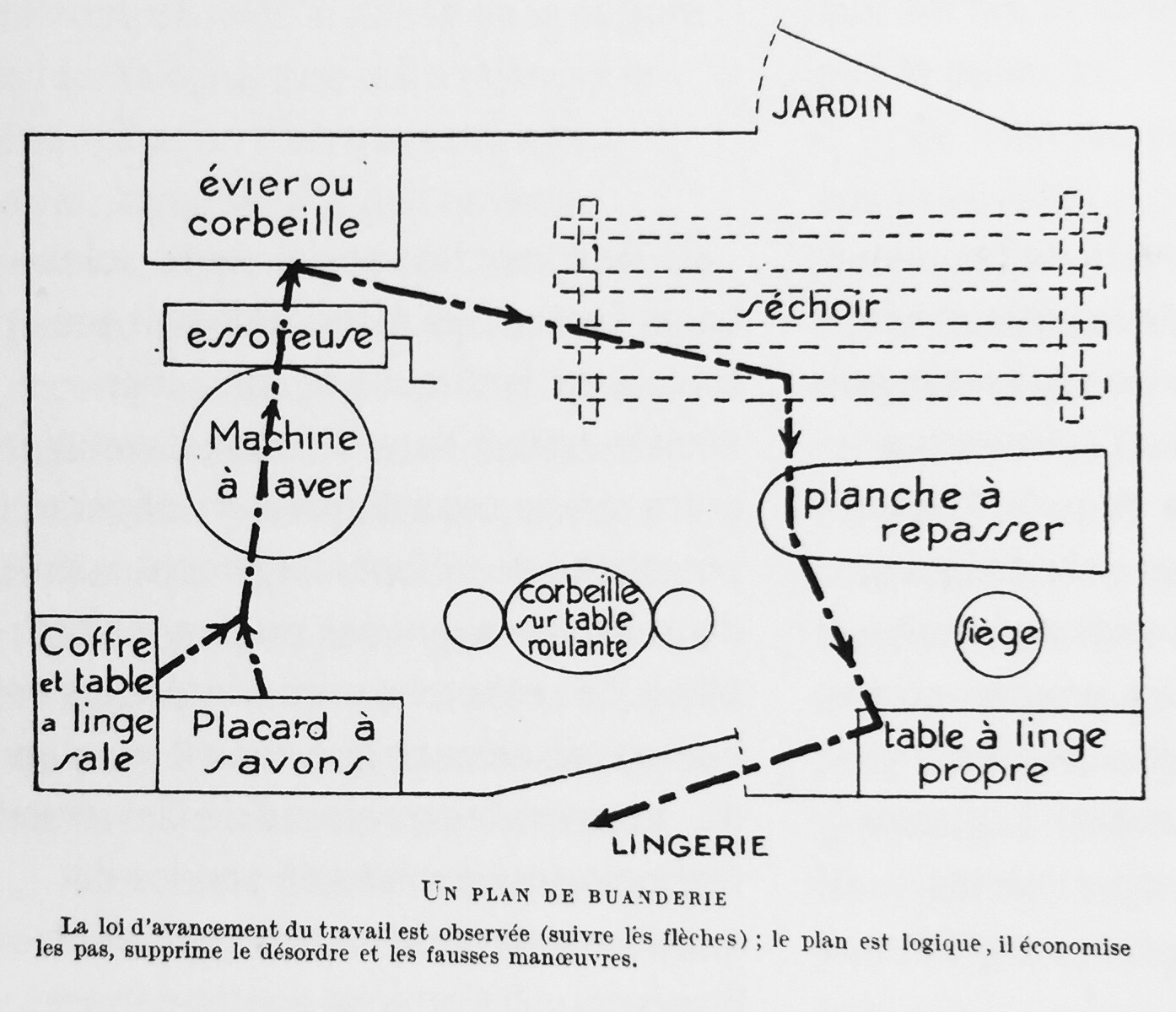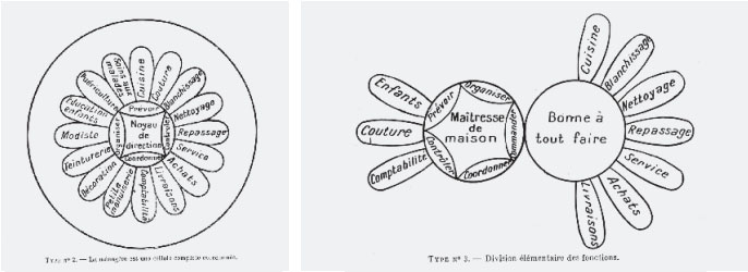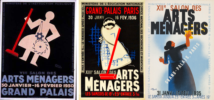 Irrigué par le projet moderne du début du XXe siècle, entre industrie et utopie, ce design qui se donne pour objectif de concevoir les intérieurs sobres et moraux de lʼhomme nouveau crée aussi un paradoxe. La domus est historiquement le territoire de lʼange de maison21 et il nʼest pas question que ce dernier sʼinvite dans les domaines masculins de lʼespace urbain ou de lʼentreprise. La boniche est assignée à lʼespace domestique qui est alors sans cesse menacé de basculer dans la féminité de son occupante. Ce paradoxe, si cʼen est bien un, est tout à lʼavantage des hommes architectes qui sʼoctroient par là même le privilège de concevoir des espaces dans lesquels ils vivent, passent peut-être, mais ne travaillent pas. En somme, pour les hommes : lʼaménagement ; pour les femmes : le ménage. Au-delà du bon mot, on retrouve encore avec le mot «  ménage  » une notion rassemblant le lieu (lʼusage médiéval de maisnage), lʼactivité de gestion dudit lieu, et plus généralement lʼidée transversale de soin (ménager sa monture)22.